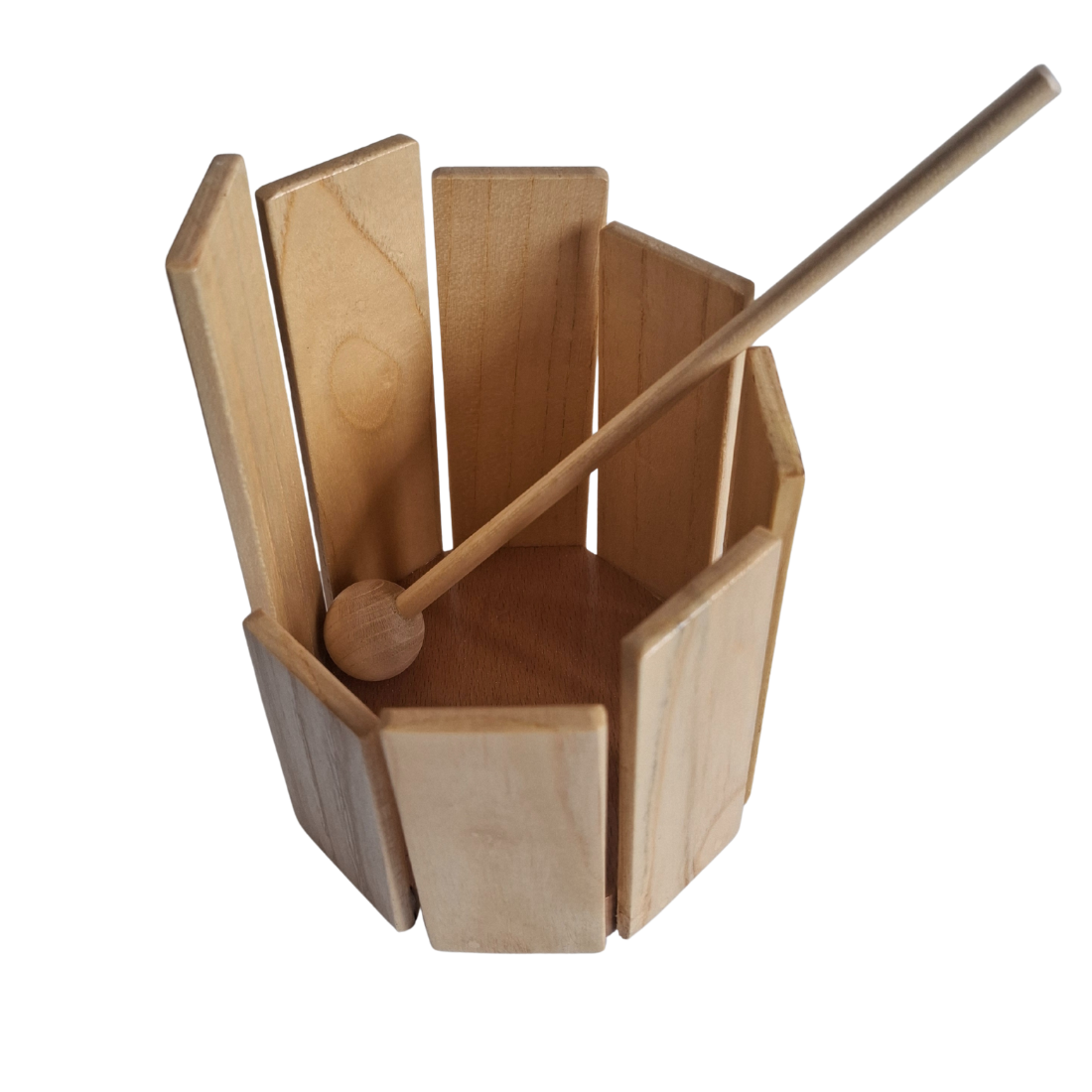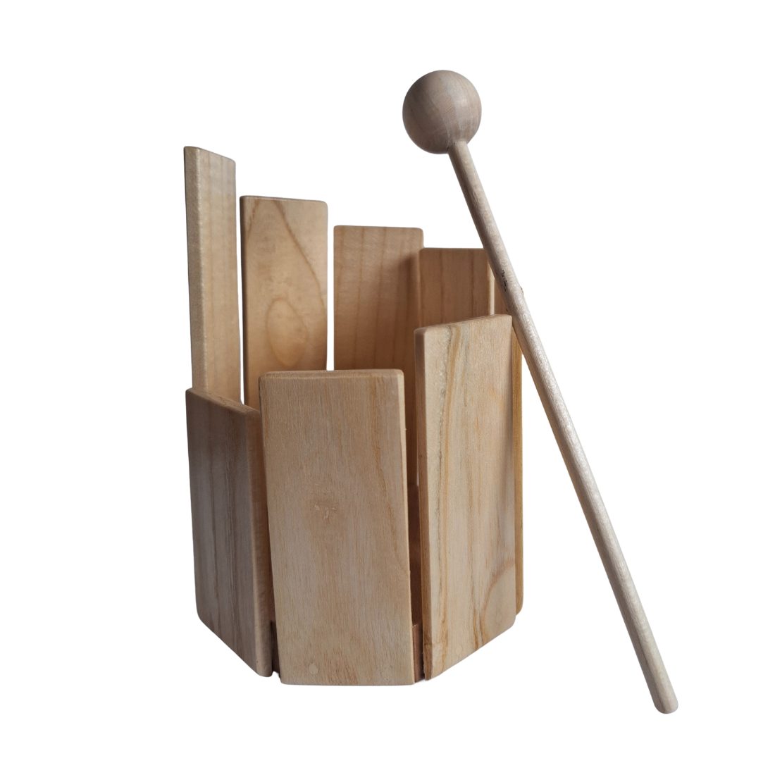 The Wooden Octoblock is a versatile percussion instrument with a warm and earthy sound, perfect for rhythmic accompaniment, sound exploration, or educational settings.