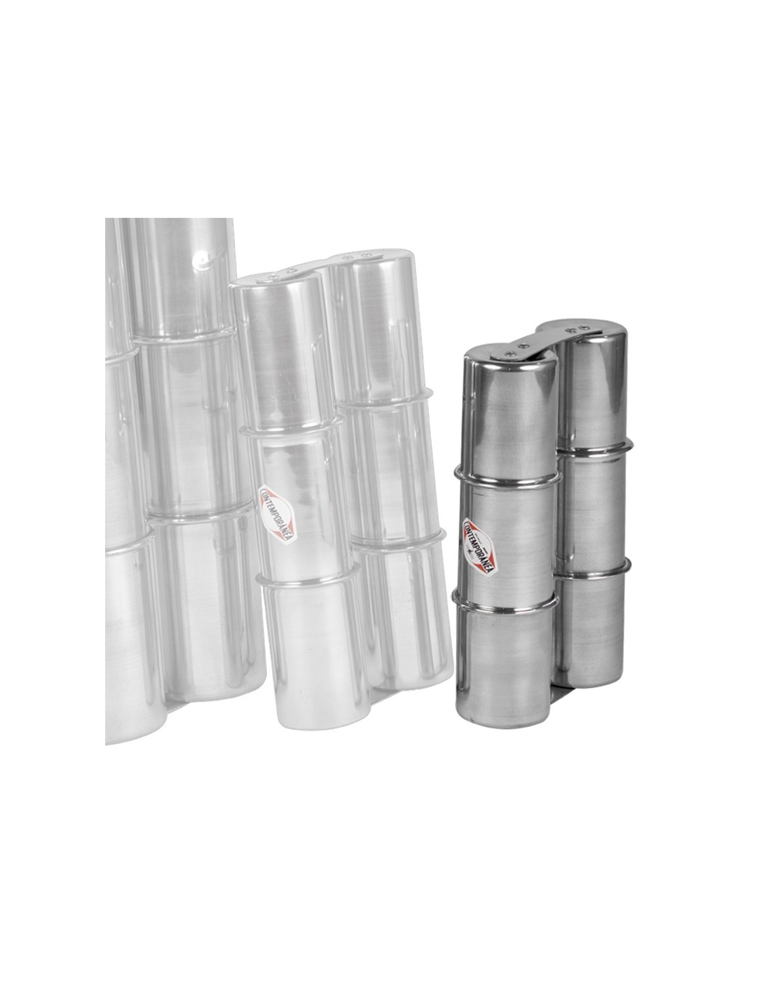 cylindrical instrument made of aluminum filled with metal pieces. A powerful-sounding shaker to accompany your group.