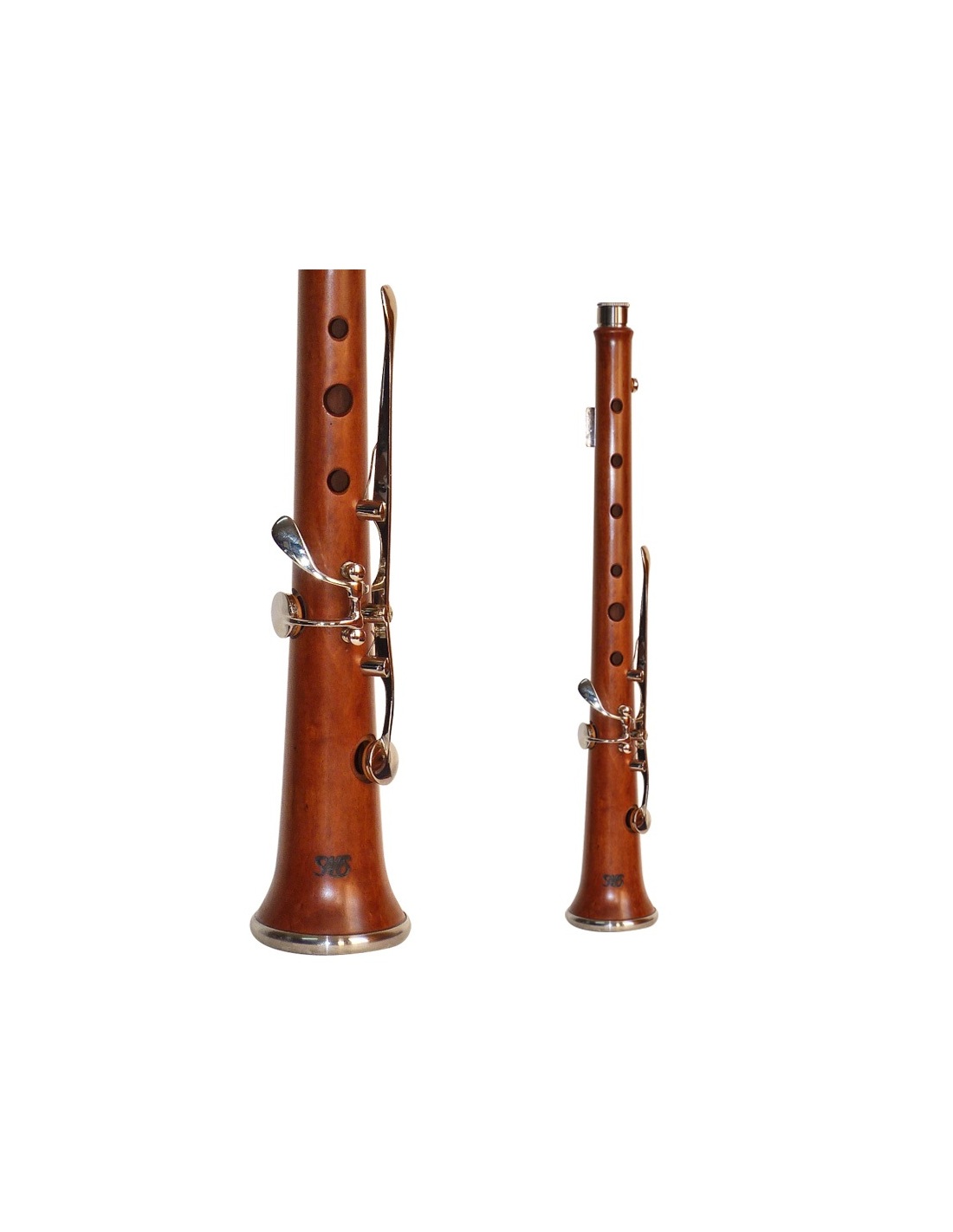 The sweet shaped Gralla is a traditional oboe (with cylindrical inner bore), fitted as well with double reed. Standard tuning is SOL4 (LA 440 Hz). Gralla with 2 chrome keys mounted (FA4 + MI4). The octave key was invented by the luthier Francesc Sans and can be mounted on all instruments that have not yet been equipped with. The instrument comes with soft case and neck. The reed is not included.