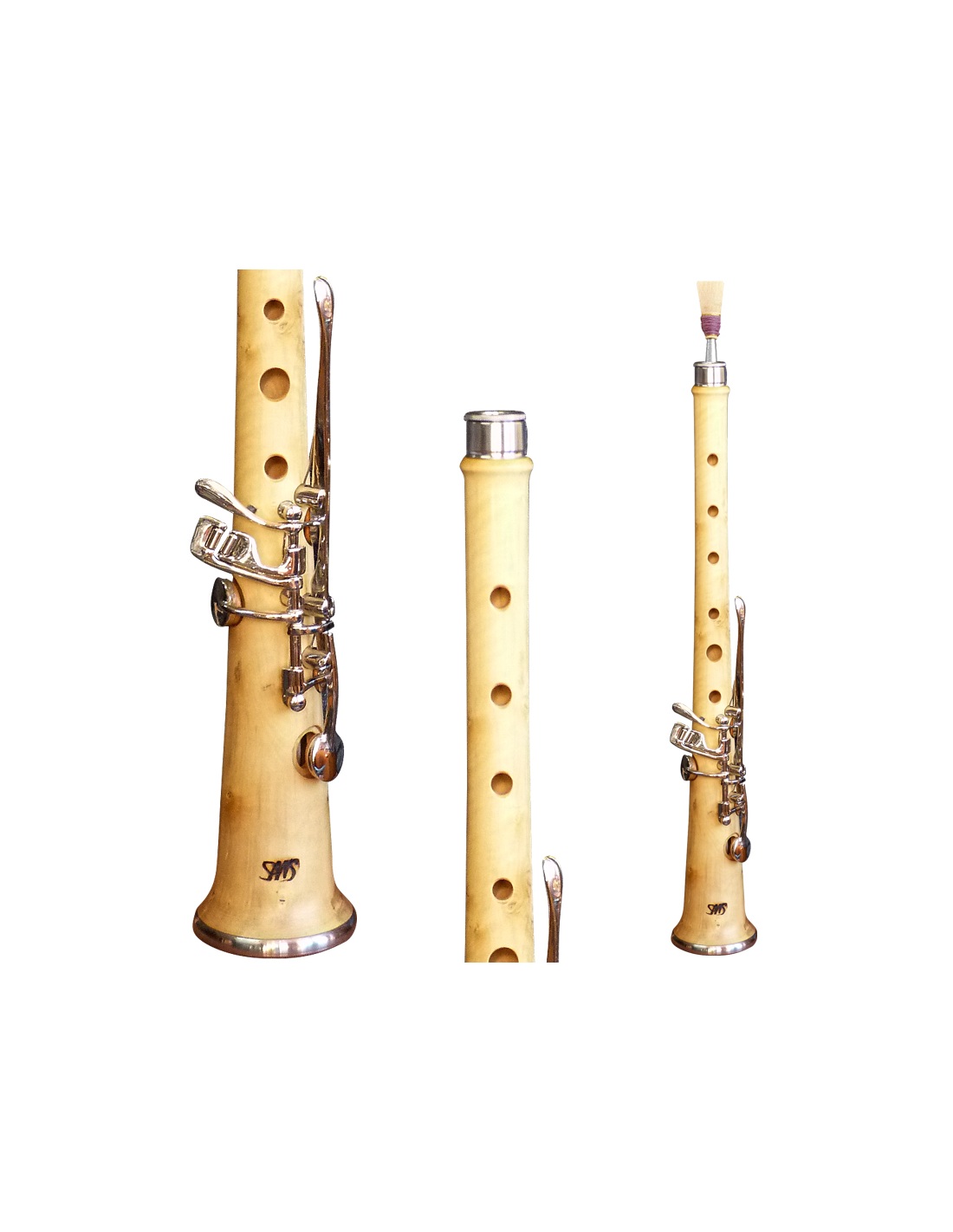 The sweet shaped Gralla is a traditional oboe (with cylindrical inner bore), fitted as well with double reed. Standard tuning is SOL4 (LA 440 Hz). Gralla with 4 chrome keys mounted (FA4 + MI4 + FA#4 + SOL#4). The octave key was invented by the luthier Francesc Sans and can be mounted on all instruments that have not yet been equipped with. The instrument comes with soft case and neck. The reed is not included.