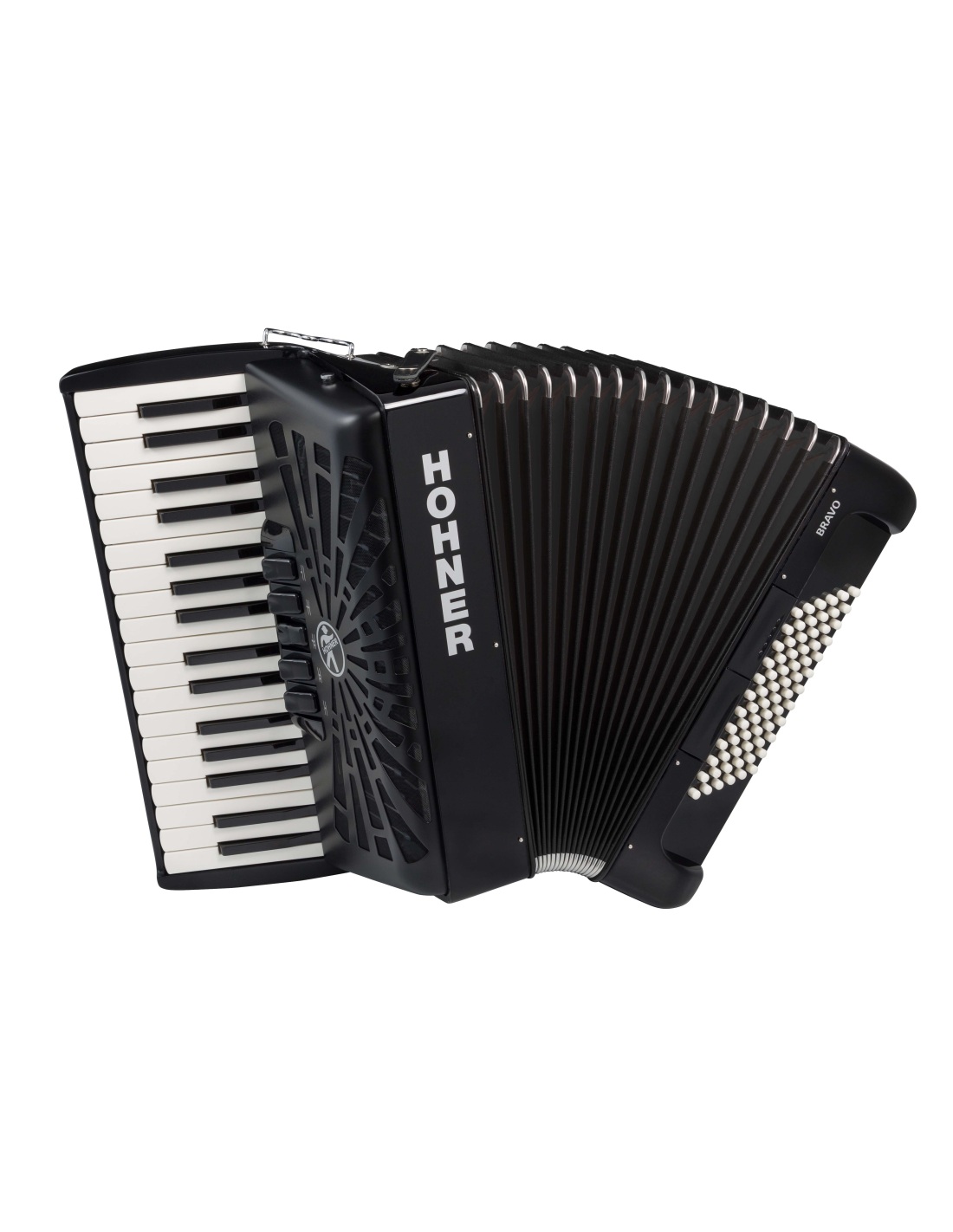 34 keys. 72 bass bottoms. 3 voices. 5 register. 2 bass register. High quality bag.