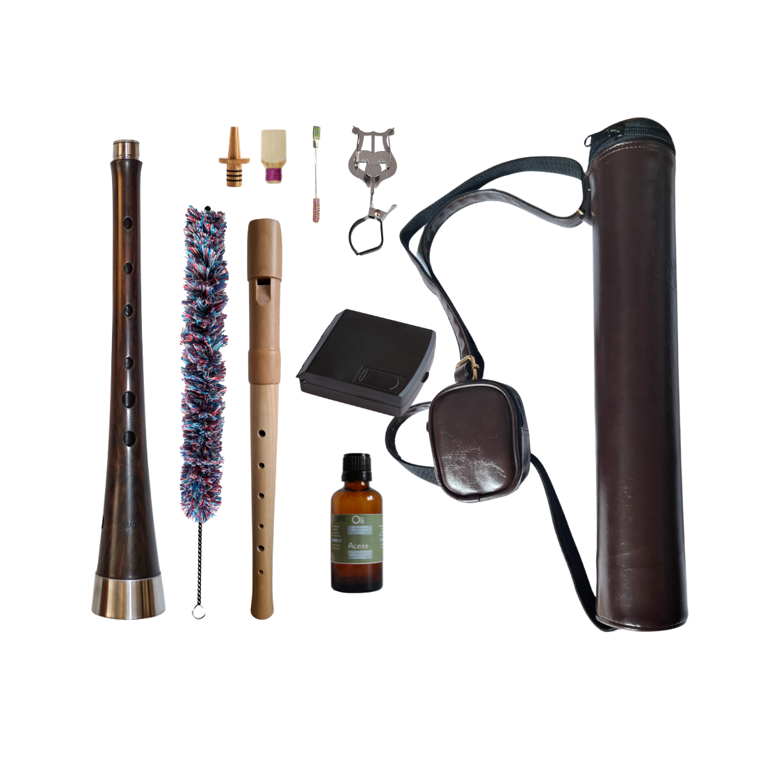 Faux leather case with a rigid inner tube and reed holder compartment.